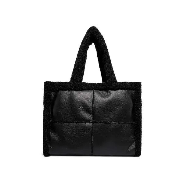 • A functional tote bag that pays attention to subtle details with its slightly crackled vegan leather composition. Sherpa detailing along body stitching, outer frame, and as well as for the top handle/ shoulder strap. An interior spacious enough to store your laptop, wallet, and other main essentials for an eventful day. An elegant purse to match with any outfit and serve as an everyday handbag.